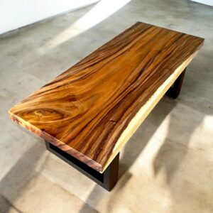 โต๊ะกลางโซฟาไม้ ไม้ขอบธรรมชาติ ขาเหล็กทรงสี่เหลี่ยม – Live Edge Solid Wooden Coffee Table Slab Luxury Style Various Sizes
