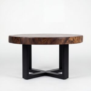 โต๊ะกลางโซฟา โต๊ะกาแฟ โต๊ะรับแขก ไม้จามจุรีแผ่นเดียว ขาเหล็กไขว้ จัดส่งฟรี!
