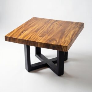 โต๊ะกลางโซฟาไม้ ไม้ขอบตัดตรง ขาเหล็กทรงสี่เหลี่ยม – Straight-Cut Edge Solid Wooden Coffee Table Slab Luxury Style Various Sizes