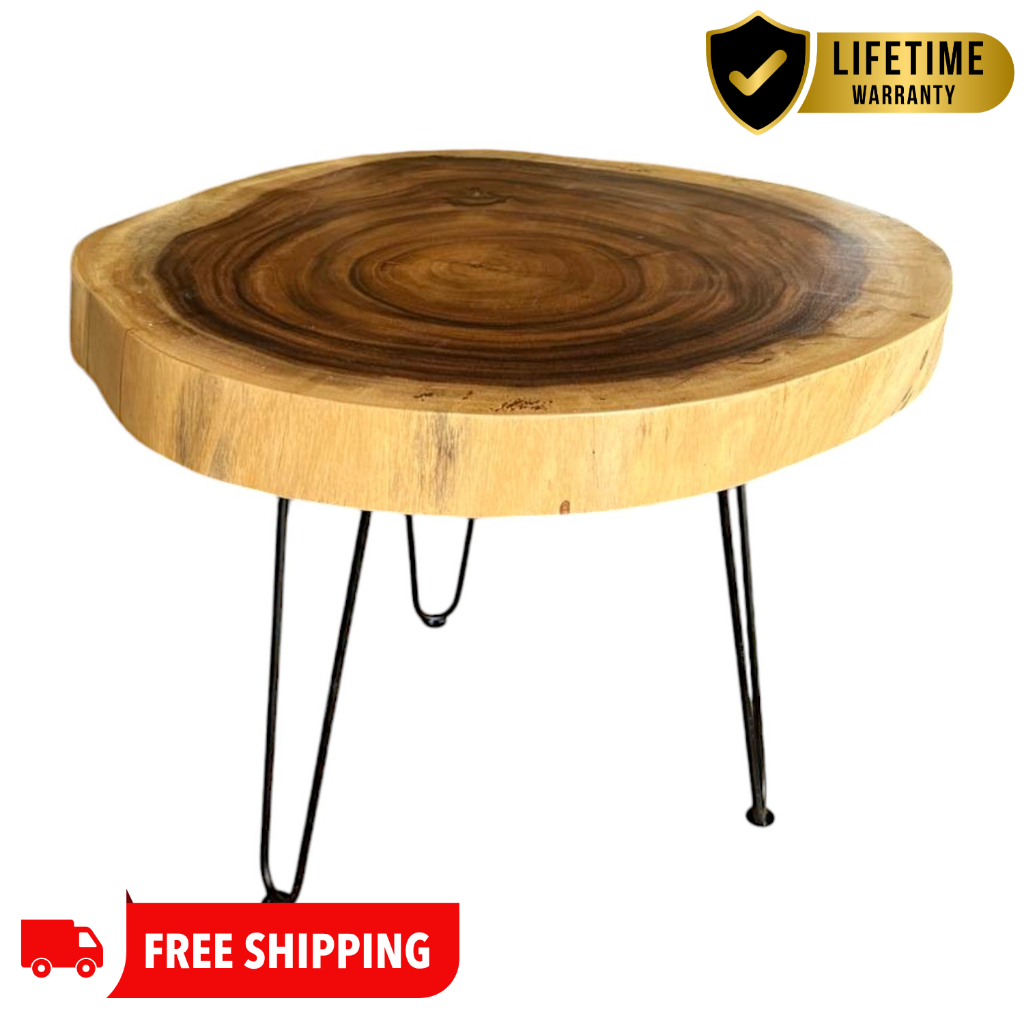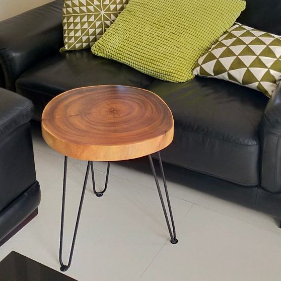 โต๊ะข้างโซฟา ท็อปไม้จามจุรีแผ่นเดียว ขาเหล็ก สไตล์โมเดิร์น/ลอฟท์ จัดส่งฟรี!