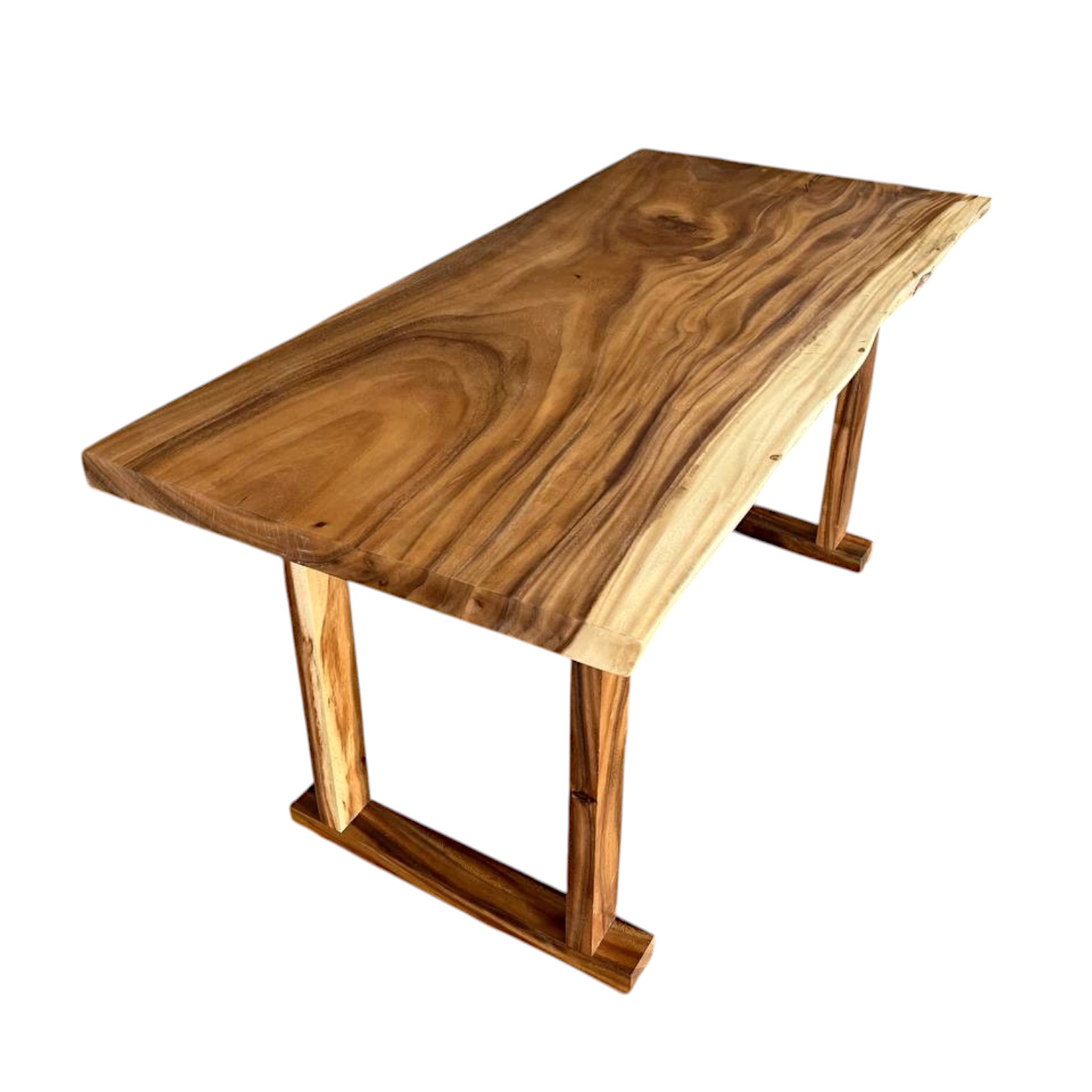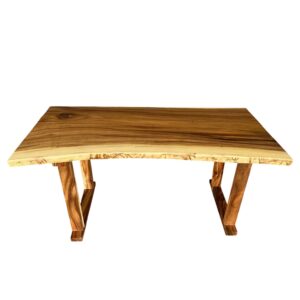 ✅ ท็อปเป็นไม้จามจุรี หรือไม้ฉำฉา แผ่นเดียวไร้รอยต่อ ตัดตรงเพื่อใช้สำหรับชิดผนัง 1 ด้าน อีกด้านเป็นขอบแบบธรรมชาติ (Natural Edge) ความหนา 4.5 – 5 cm พ่นเคลือบแลคเกอร์เรียบร้อยพร้อมใช้งาน