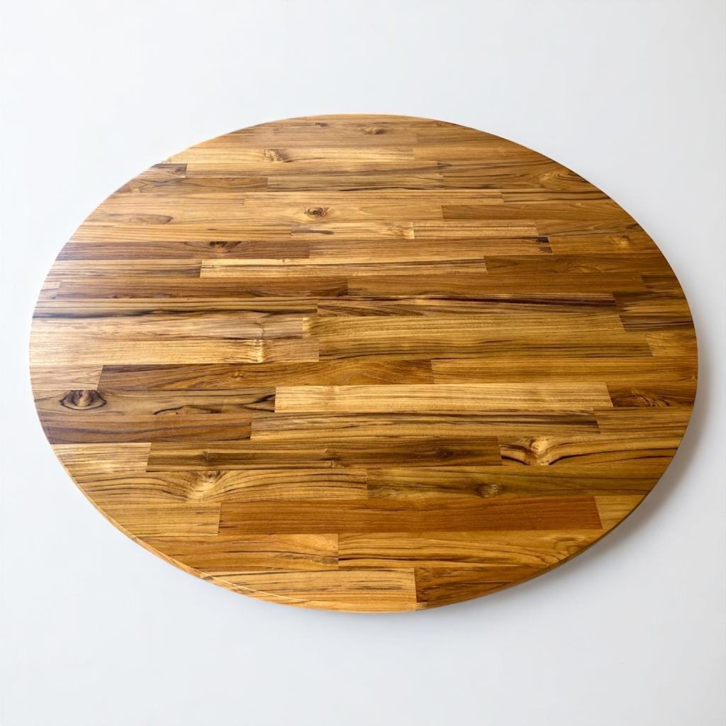 ท็อปไม้สักประสานกลม เคลือบแลคเกอร์ ไม้หน้าโต๊ะกลม ไม้เกรด AA แผ่นไม้ทำท็อปโต๊ะ มีหลายขนาด จัดส่งฟรี! (Copy)